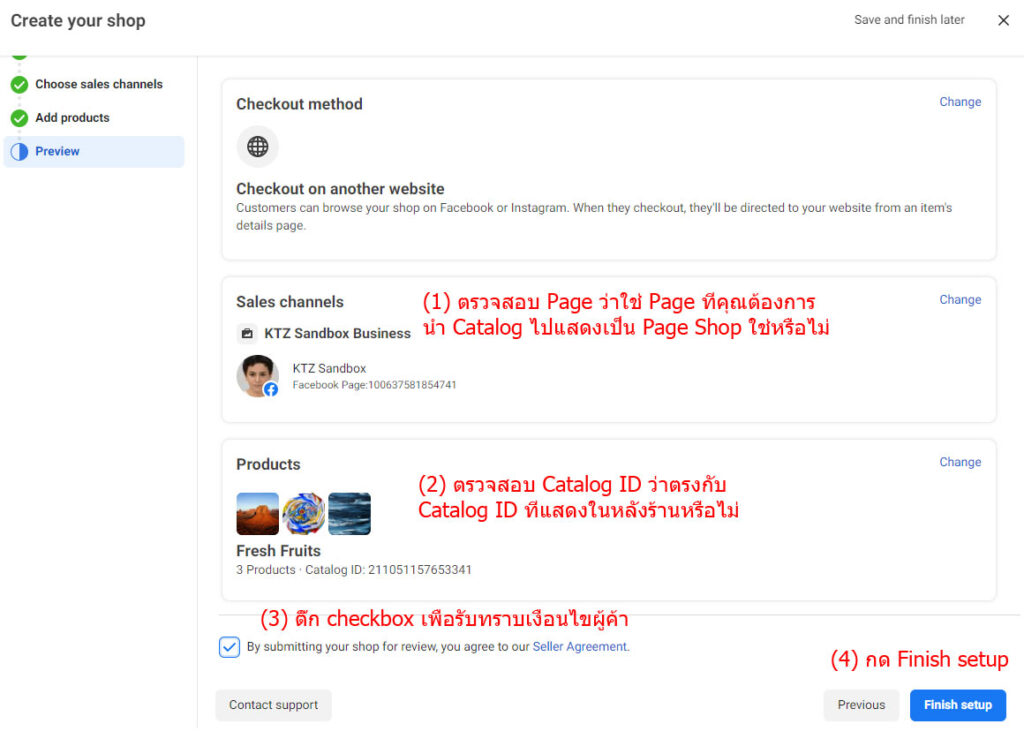 ตรวจสอบว่า เลือก Page ถูกแล้ว เลือก Catalog ถูกแล้ว ทุกอย่างถูกต้อง ก็ให้กดปุ่ม [Finish Setup] ตามในภาพ