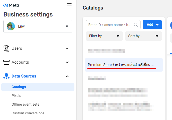 เลือก Business Manager ที่เป็นเจ้าของ Page และ Catalog ที่คุณต้องการแก้ไข