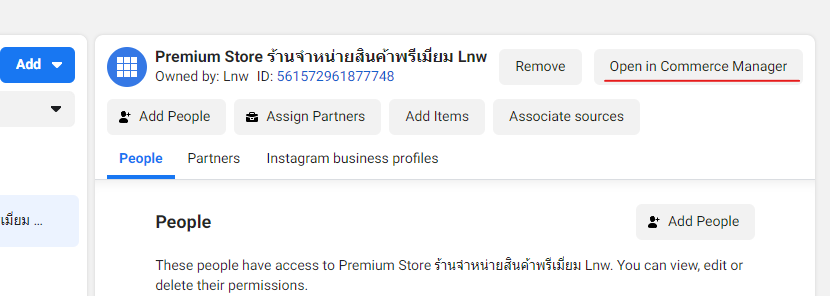 คลิกปุ่ม Open in Commerce Manager