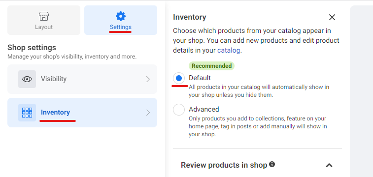 คลิกที่ Inventory แล้วเลือกที่ (x) Default