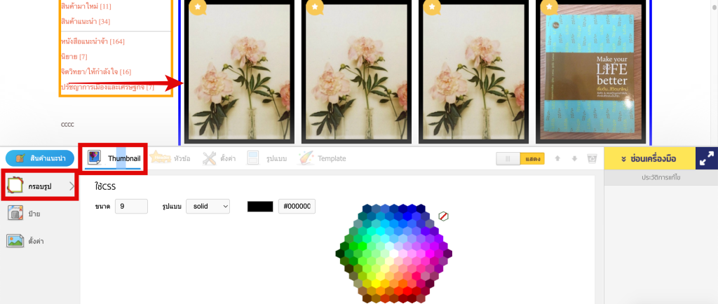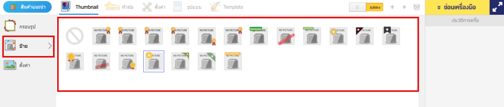 ทางร้านสามารถเลือกกรอบของภาพสินค้าที่หน้าร้านหรือป้ายคาดรูปสินค้า เช่น ขายดี แนะนำ เป็นต้นได้ที่