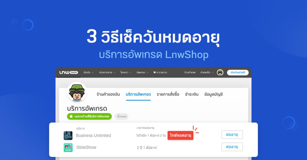 วิธีเช็ควันหมดอายุบริการอัพเกรด LnwShop