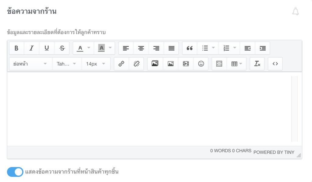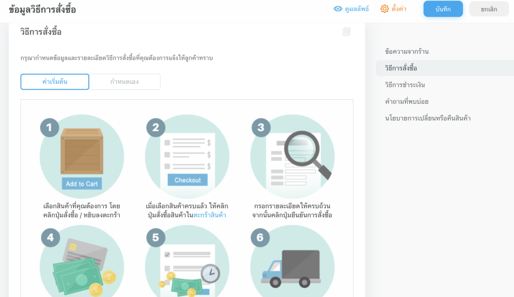 ร้านสามารถตั้งค่าหรือกำหนดข้อความเกี่ยวกับวิธีการสั่งซื้อต่างๆที่ต้องการแจ้งลูกค้าได้ที่