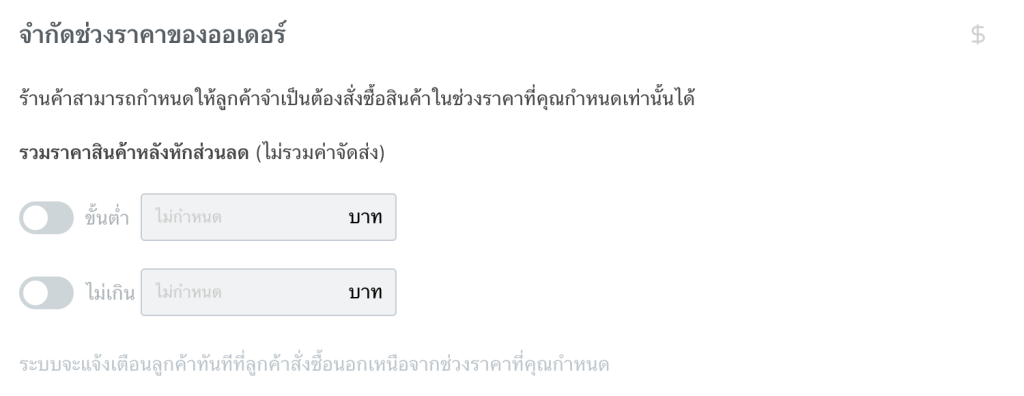 ร้านค้าสามารถกำหนดให้ลูกค้าจำเป็นต้องสั่งซื้อสินค้าในช่วงราคาที่กำหนดเท่านั้นได้ที่
