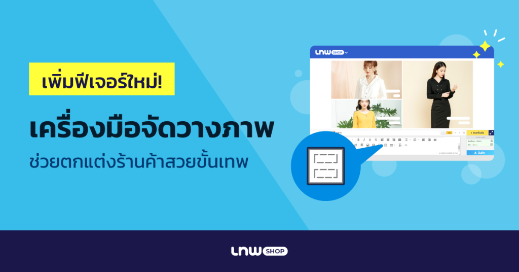 เครื่องมือจัดวางภาพ (Photo Collage) อีกฟีเจอร์ตกแต่งรูปภาพบนเว็บไซต์ LnwShop ที่จะทำให้ร้านค้าสามารถจัดรูปภาพบนเว็บไซต์ให้แสดงผลสวยงาม มีให้เลือกใช้งานหลากหลายเทมเพลต ซึ่งนอกจากความสวยงามแล้ว ยังสามารถแทรกลิงก์ เพื่อให้ลิงก์ไปยังหน้าสินค้า หรือหมวดหมู่ที่ต้องการได้อีกด้วย ฟีเจอร์เด็ด ๆ แบบนี้ จะมีขั้นตอนการใช้งานอย่างไร วันนี้เราจะพาไปดูกันค่ะ