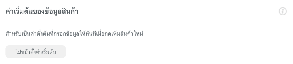 ร้านสามารถกำหนดค่าเริ่มต้นข้อมูลสินค้าได้ โดยจะทำให้ไม่ต้องพิมพ์หรือใส่ข้อมูลใหม่ทุกครั้งที่เพิ่มสินค้าโดยไปที่