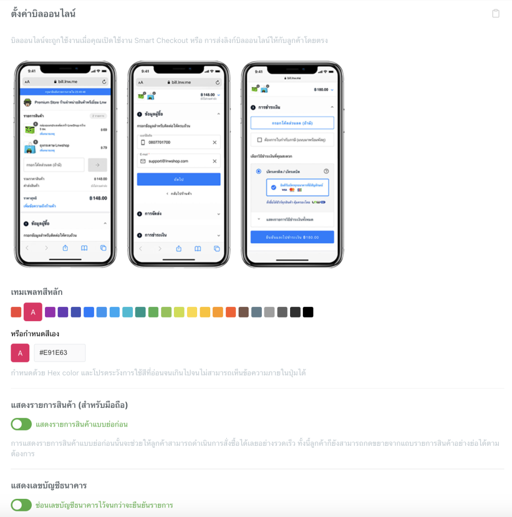 บิลออนไลน์เป็นระบบสร้างบิลให้กับลูกค้า ซึ่งบิลที่สร้างขึ้นจะเป็นหน้าเว็บที่แสดงรายละเอียดรายการสั่งซื้อ, ช่องทางการชำระเงิน, การแจ้งชำระเงิน, ข้อมูลการจัดส่ง รวมถึงข้อมูลอื่นๆที่ลูกค้าควรรู้ ซึ่งร้านค้าสามารถส่งลิงก์บิลออนไลน์ให้กับผู้ซื้อ เพื่อที่ลูกค้าจะเข้าไปกรอกข้อมูลการสั่งซื้อเพิ่มเติม, จัดการออเดอร์ของตัวเองหรือตรวจสอบรายละเอียดออเดอร์ได้อย่างง่ายดายในลิงก์เดียว ไม่ว่าจะเป็นรายการสินค้า ข้อมูลผู้สั่ง,การชำระเงิน,เลขพัสดุ รวมไปถึงสถานะการจัดส่งค่ะ