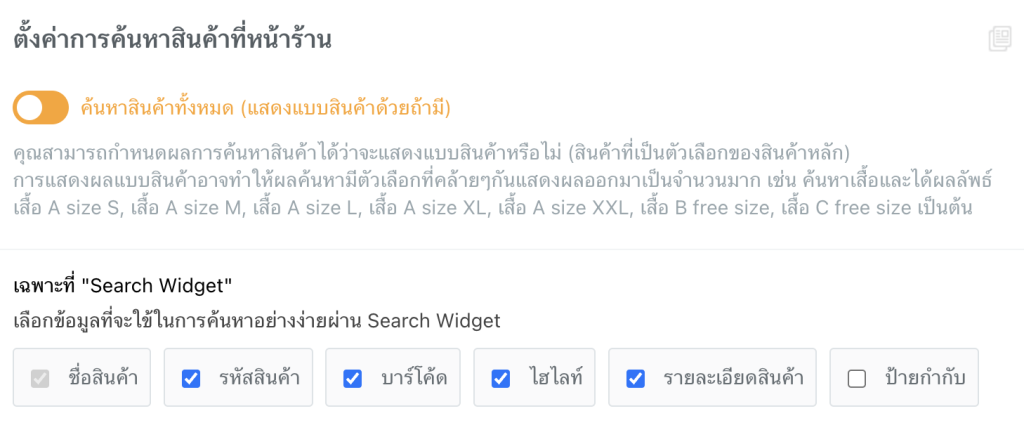 - ตั้งค่าการค้นหาสินค้าที่หน้าร้าน