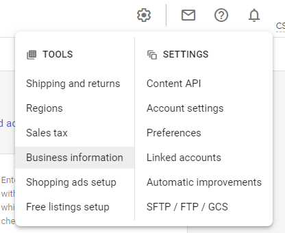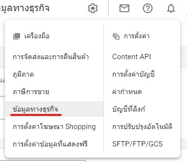 (2) คลิกที่ไอคอน เฟือง ขวาบน เลือก “Business Information”